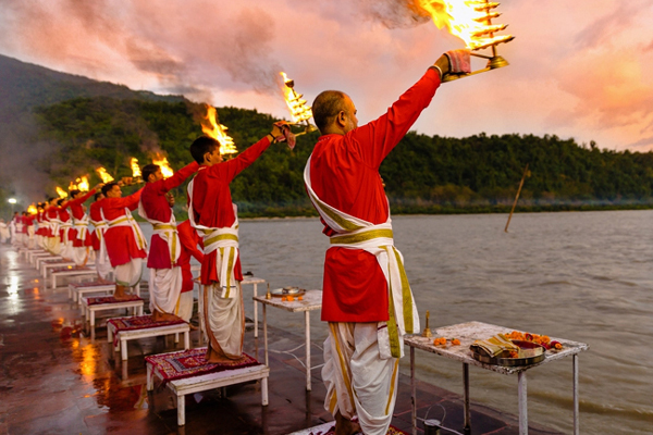 The aarti is a pleasant ritual of worshipping the Ganga. Around 50-100 people visit the aarti on any day. You have witnessed Ganga Aarati in other places like Haridwar and Varanasi too, but they are a crowded